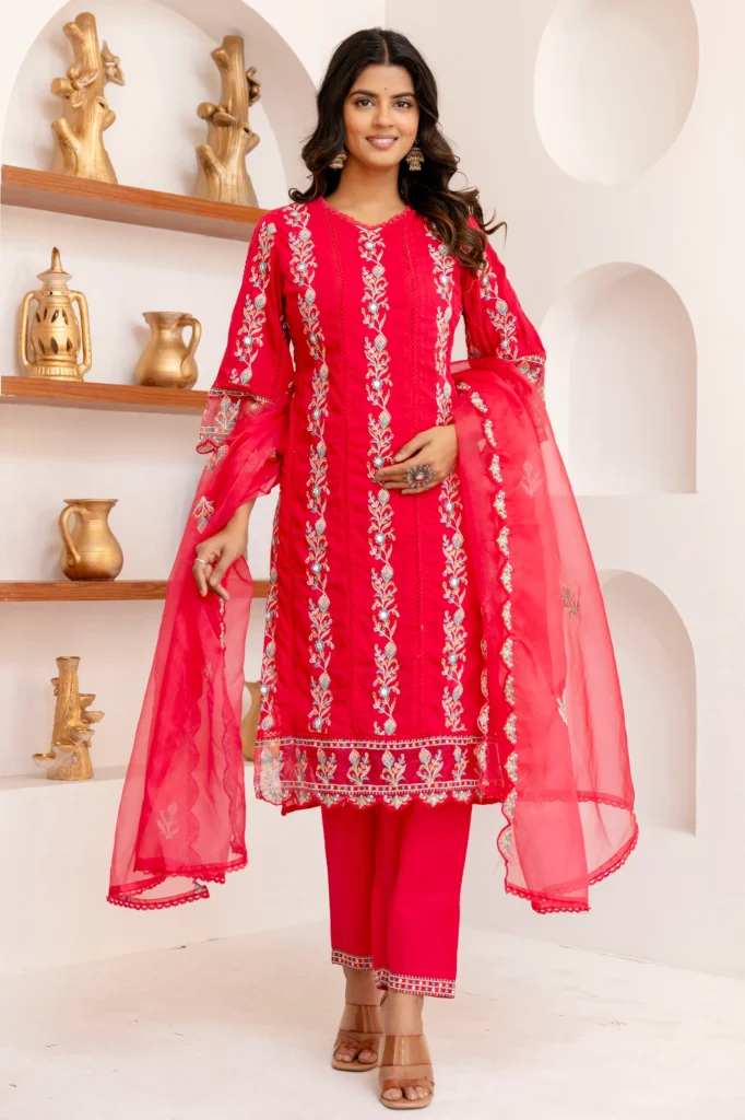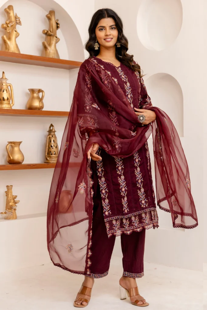 Absolutely love this kurta set! The fabric is so soft, and the embroidery is beautiful. Perfect for festive occasions!