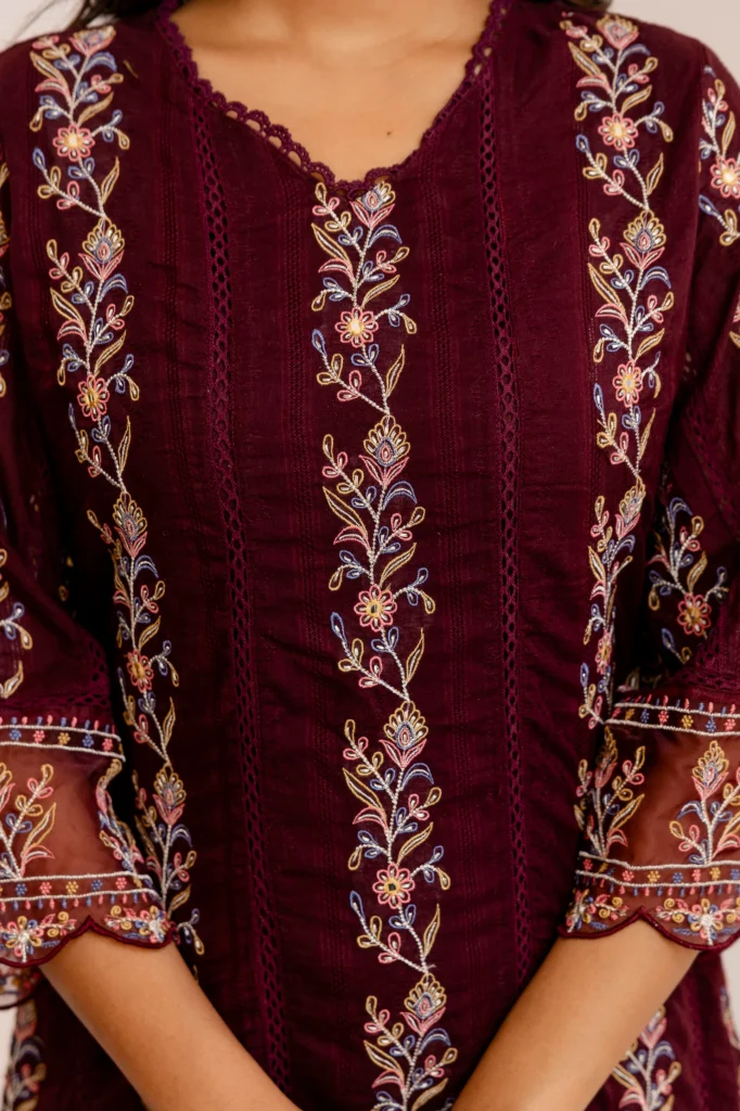 This kurta set makes me feel so graceful! The sleeves have such a delicate touch, and the embroidery is pure artistry.