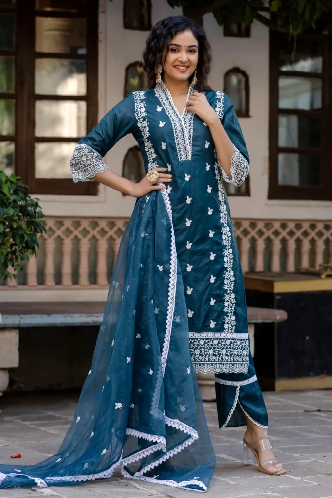 Vidalia Elegant Teal Embroidered Kurta Set